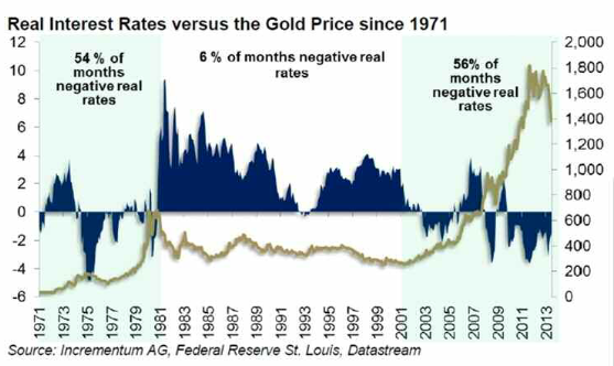 For example, in the article entitled the golden dilemma , claude erb and campbell harvey found very strong negative correlation between real interest rates and gold prices (from 1997 to 2012), to the tune of.